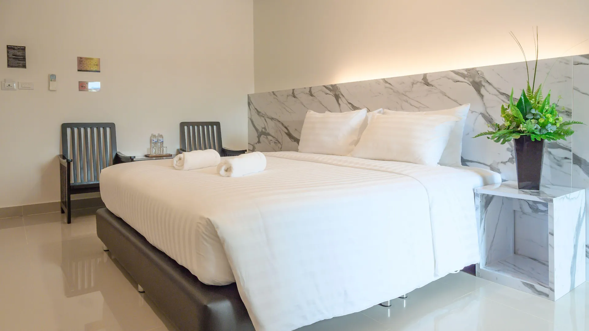 El Don Mueang Place acoge a sus huéspedes en 40 habitaciones equipadas con TV de pantalla plana con canales vía satélite, además de comodidades como climatizador. El baño está equipado con un inodoro separado y ducha.